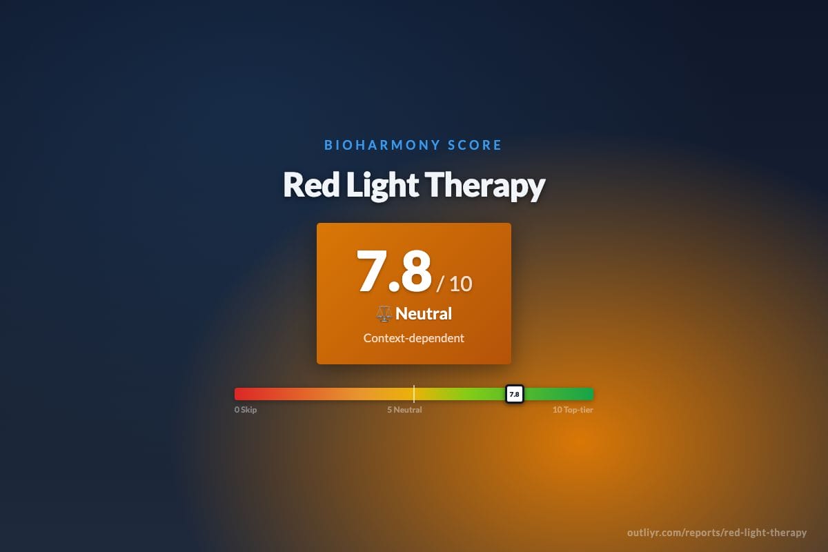 Red Light Therapy scored 7.8 / 10 (💪 Strong recommend) on the BioHarmony scale as a Device / Technology → Light Therapy.