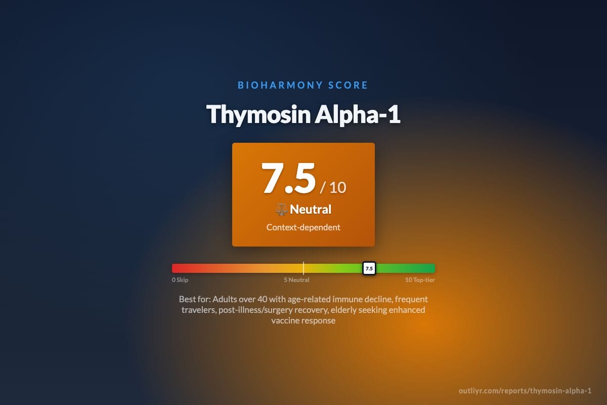 Thymosin Alpha-1 scored 7.5 / 10 (💪 Strong recommend) on the BioHarmony scale as a Substance → Peptide → Immune Peptide.