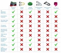 His are constructed with 100% latex (no artificial fillers) using a Latex “Continuous Layered” Bonding process that results in the most durable, consistent, and longest performing continuously looped resistance band in the world.